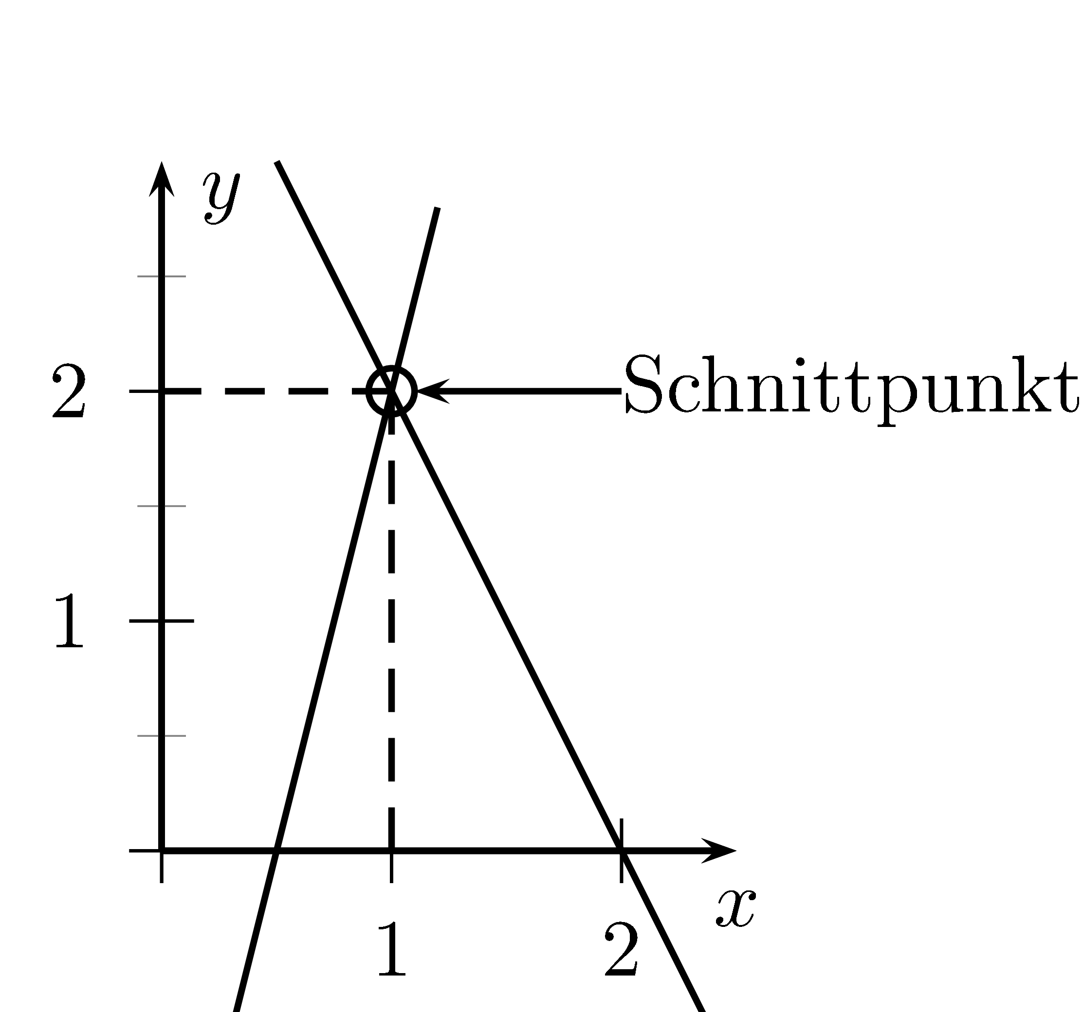 Den $y$-Wert des Schnittpunkts bekommt man indem man das berechnete $x$ in eine der beiden Geraden einsetzt.