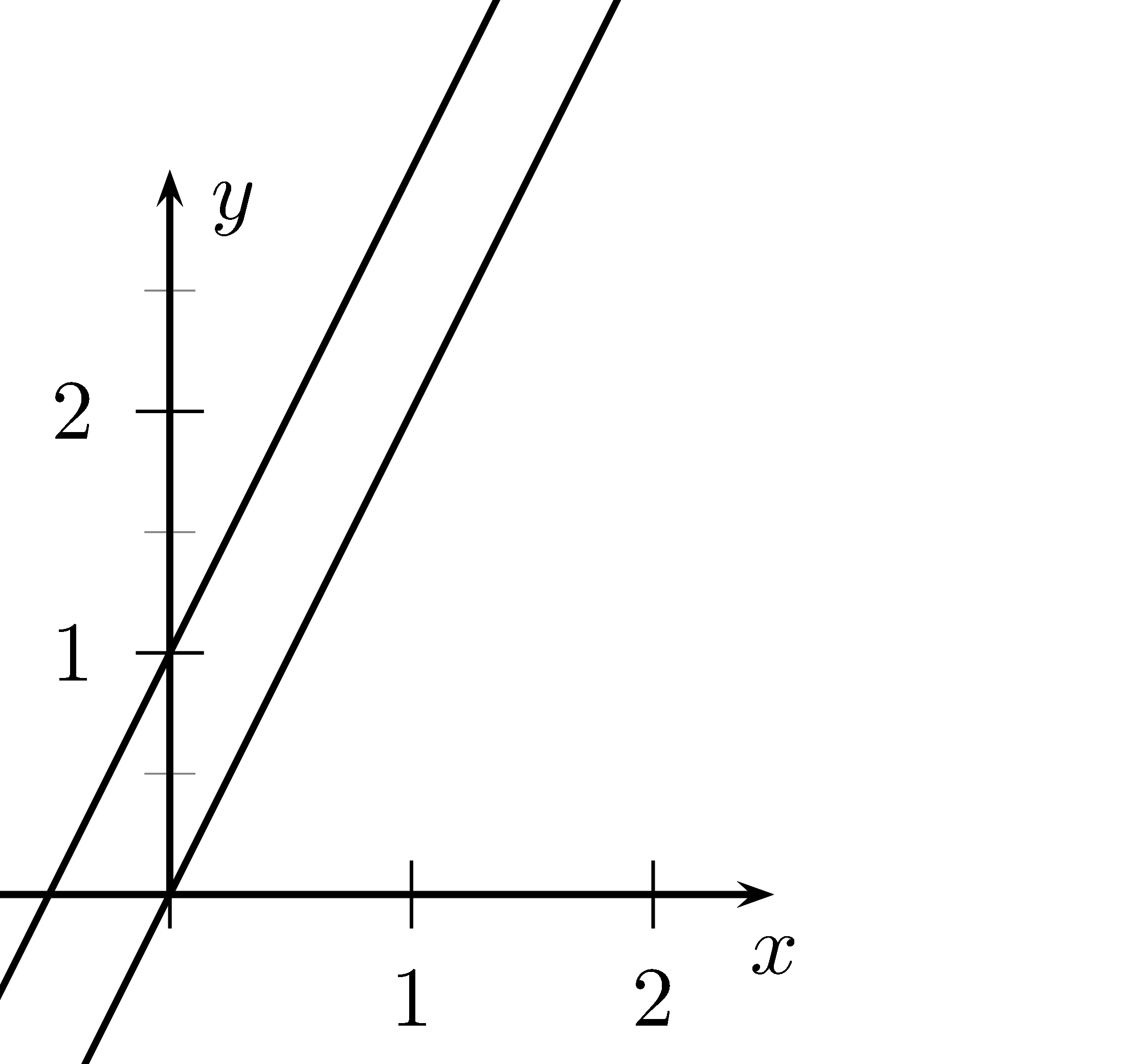 Somit schneidet die Gerade von $f(x)$ nie die Gerade von $g(x)$. Somit müssen sie parallel sein.