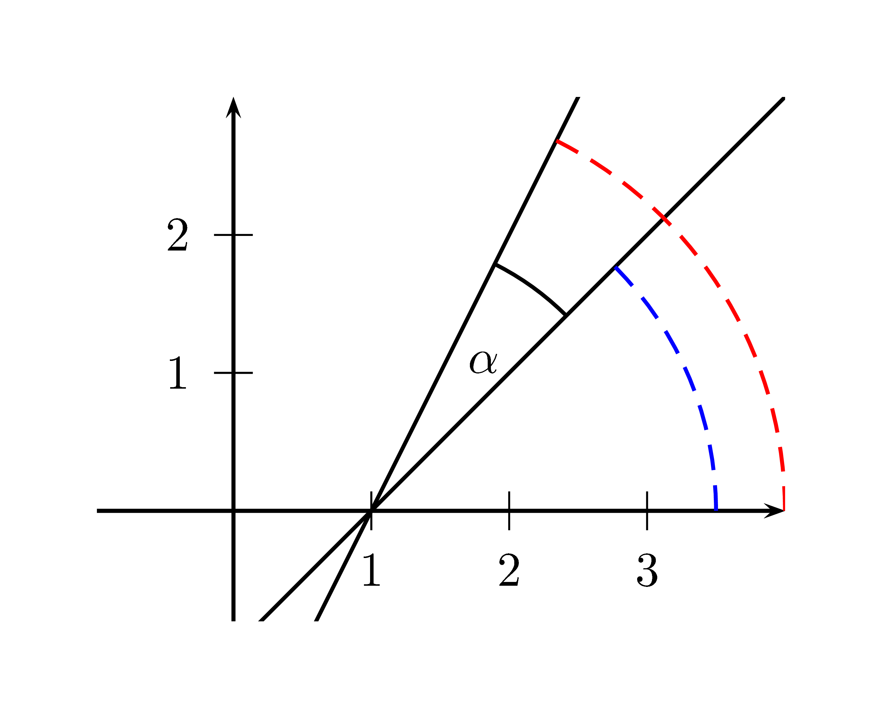 Wie die Abbildung zeigt, gibt es immer zwei Schnittwinkel, nämlich einen
