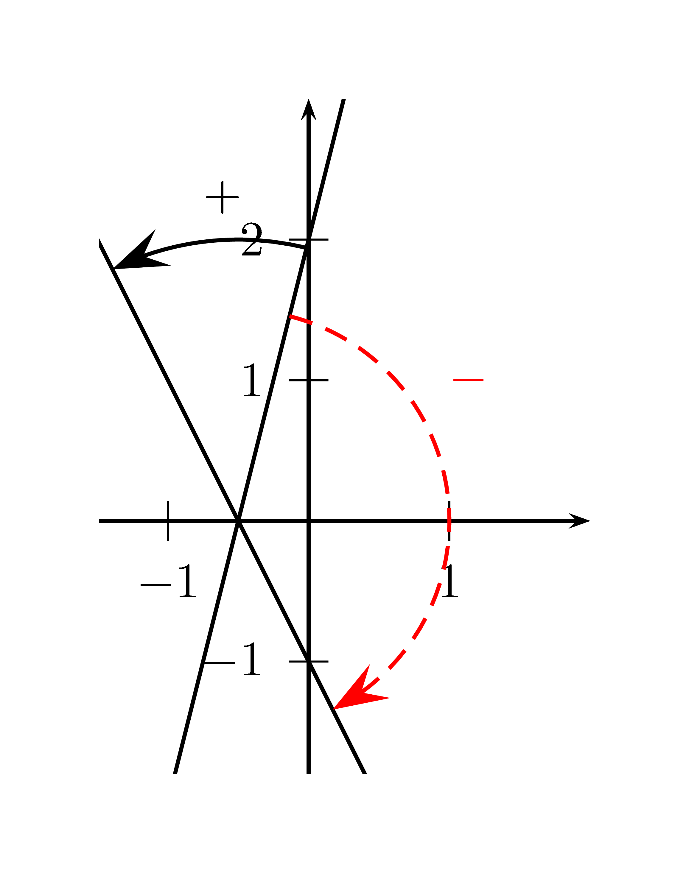Je nachdem in welcher Reihenfolge man die Steigungswinkel der zwei Geraden