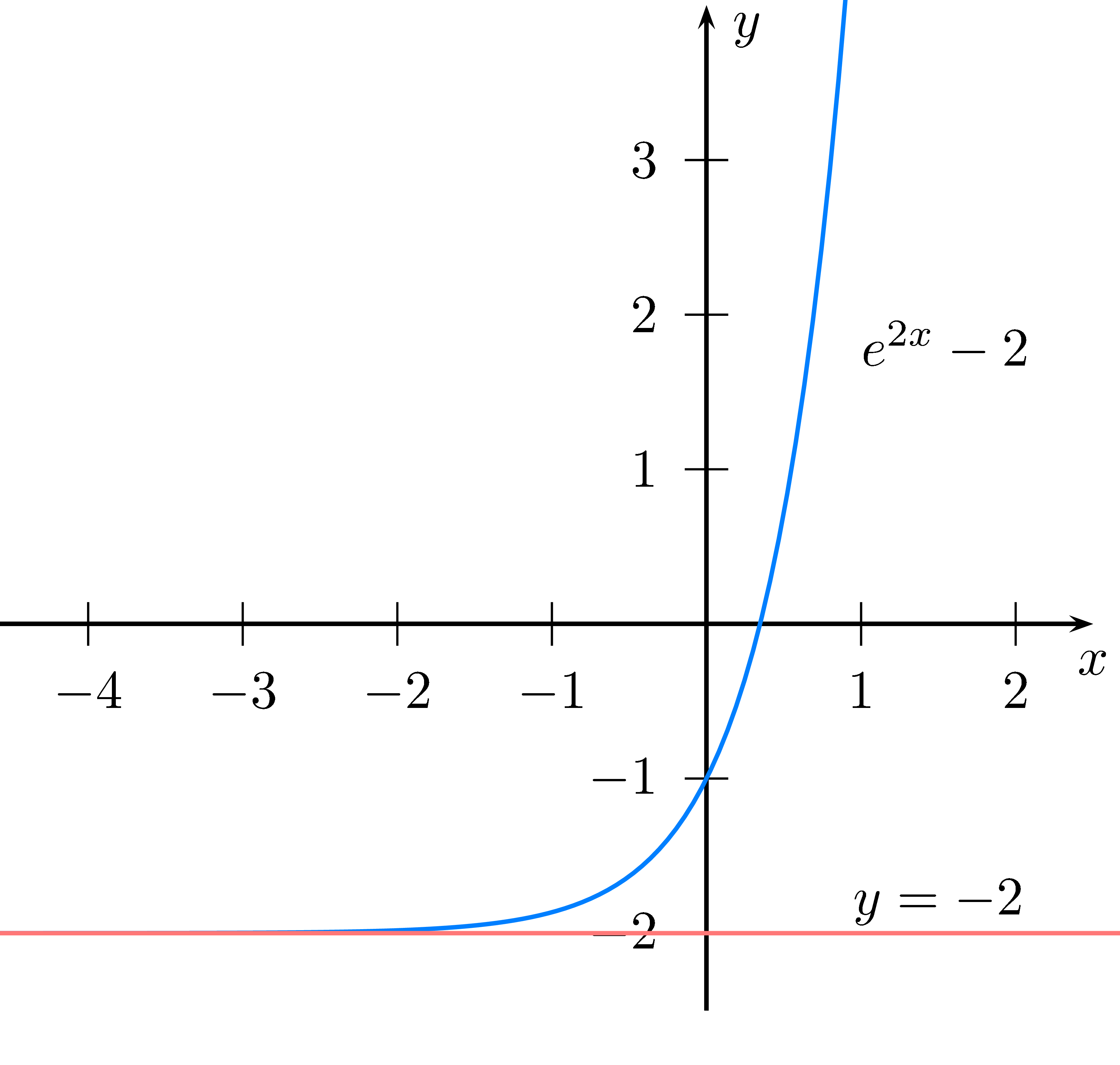 Gegeben: $f(x)=e^{2x}-2$ Gesucht: Globales Verhalten für $x\rightarrow\pm\infty$ Lösung: