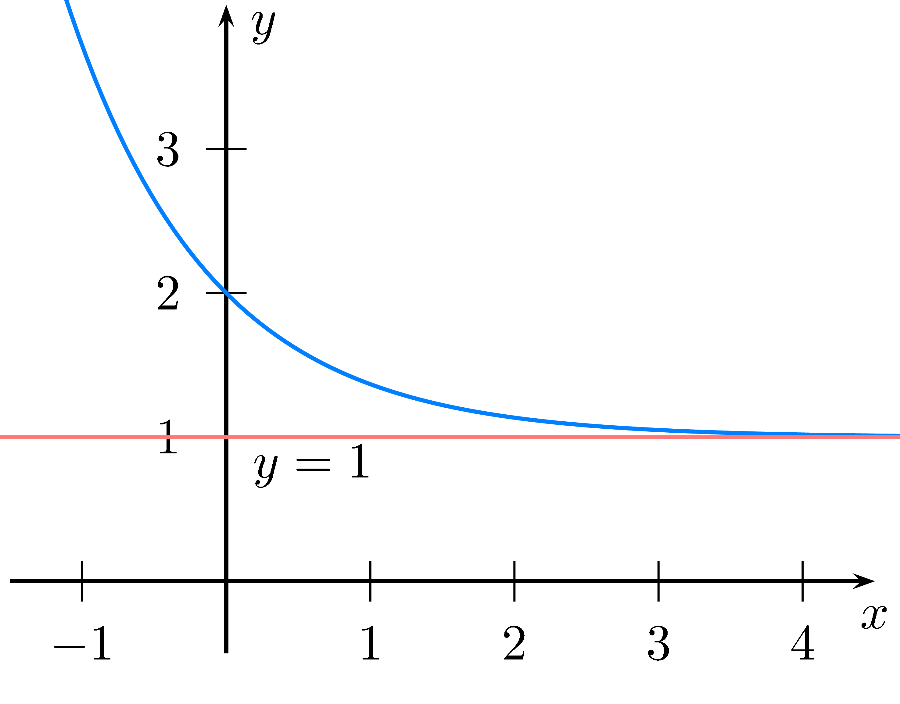 Gegeben: $f(x)=e^{-x}+1$ Gesucht: Globales Verhalten für $x\rightarrow\pm\infty$ Lösung: