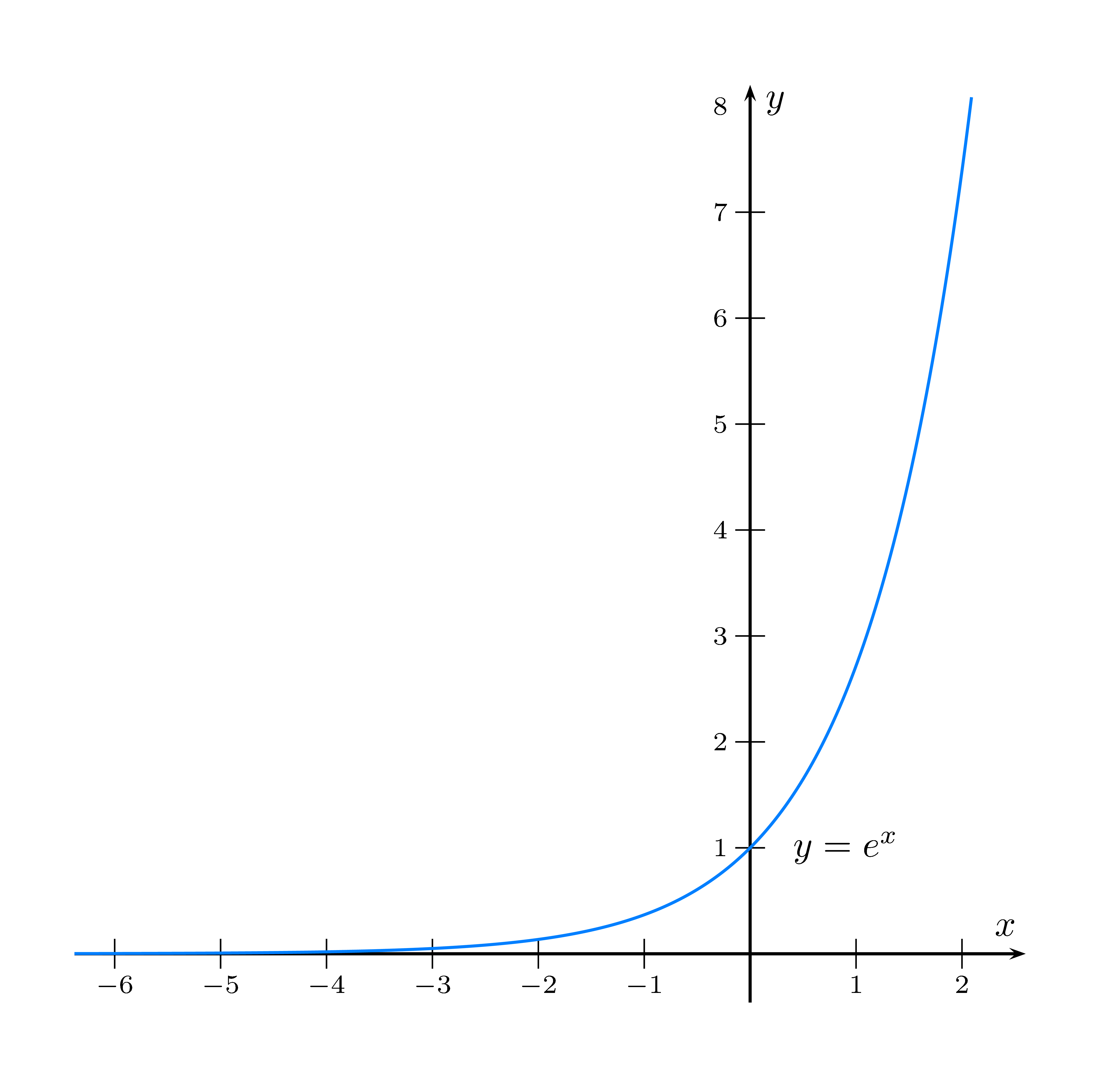 Die natürliche Exponential-Funktion hat die Basis $e=2{,}71828\,18284\,59045\,23536\,02874\,\dots $