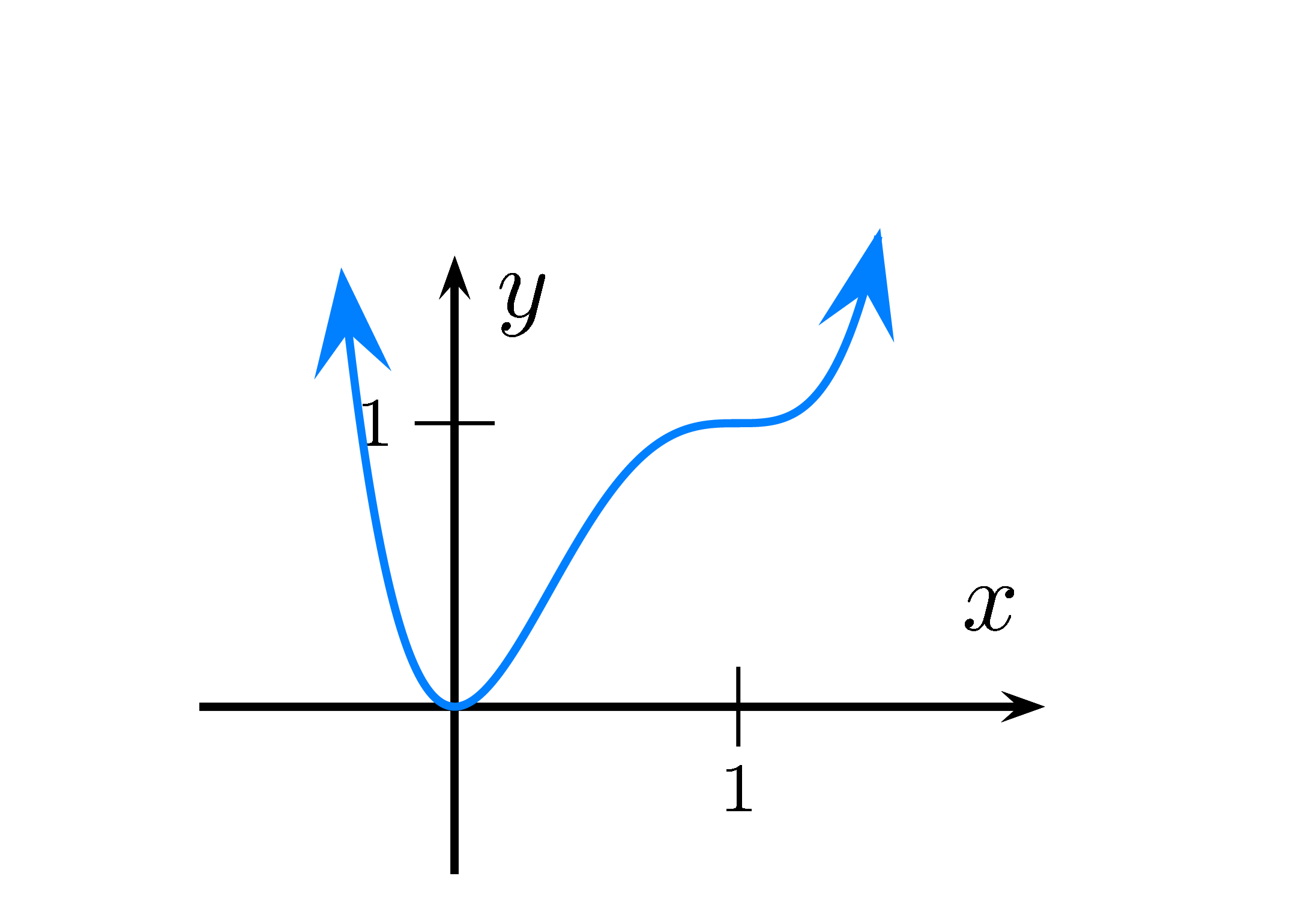 Beschreibe das globale Verhalten von $f(x)=3x^4-8x^3+6x^2$
