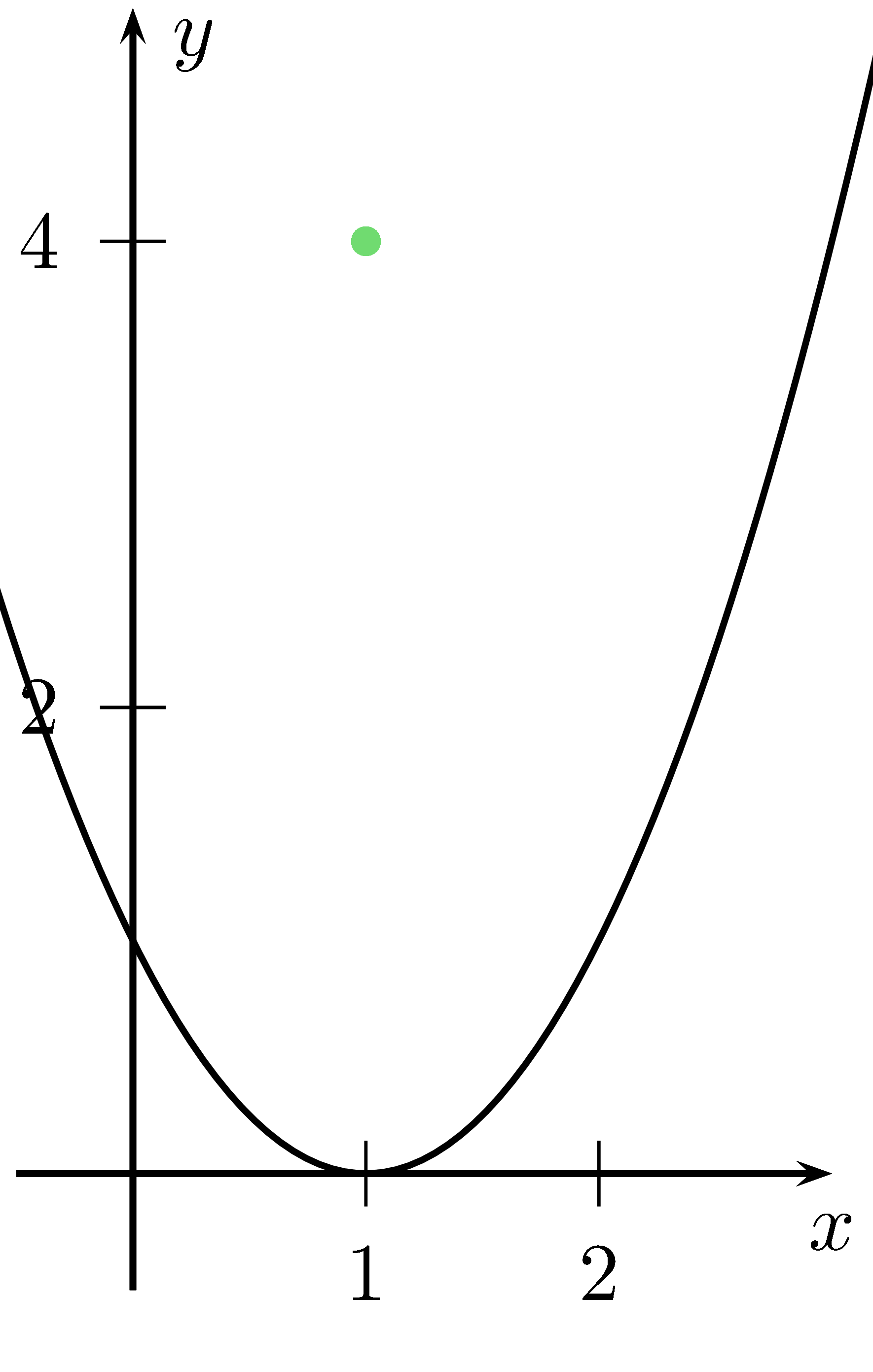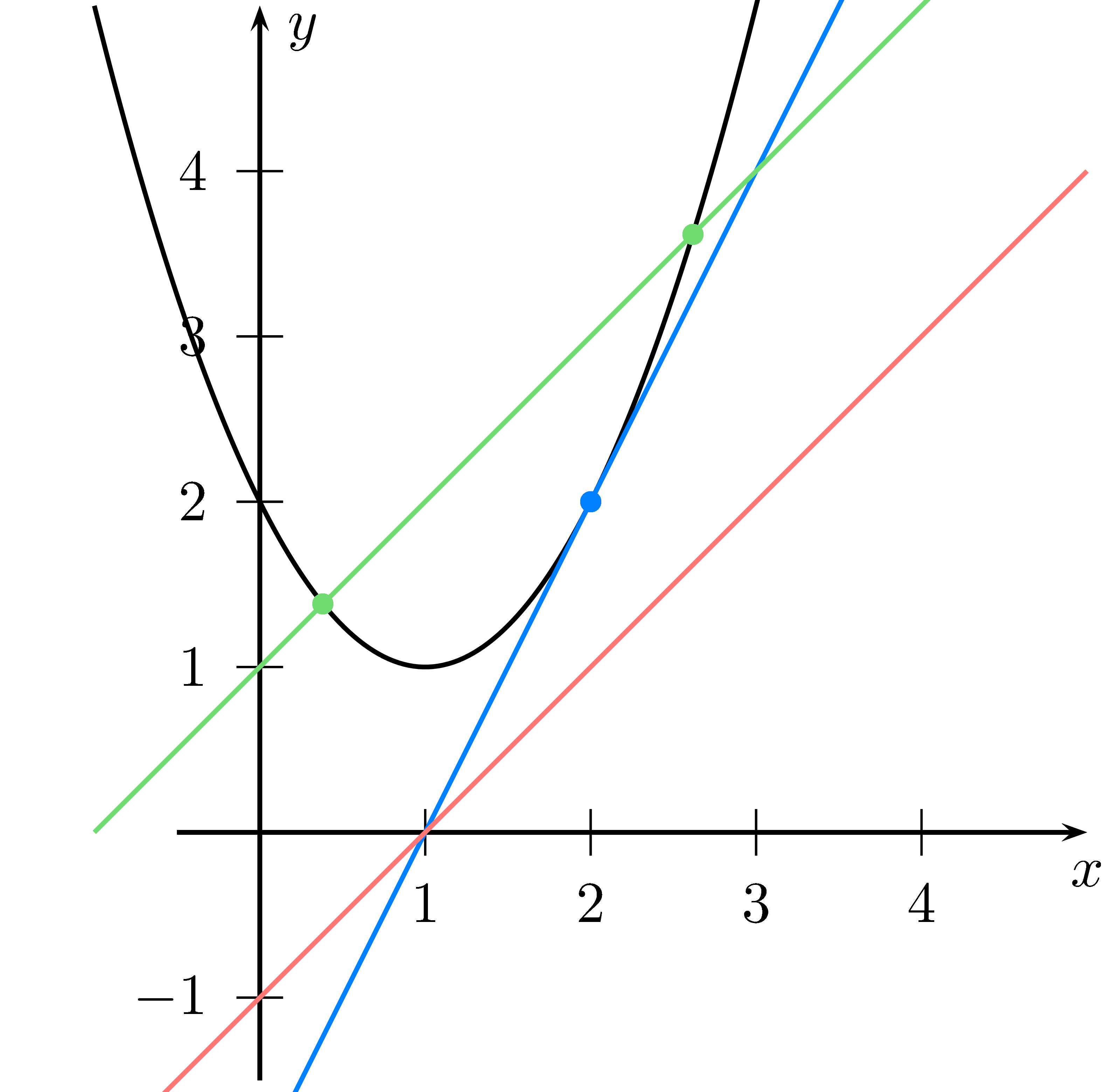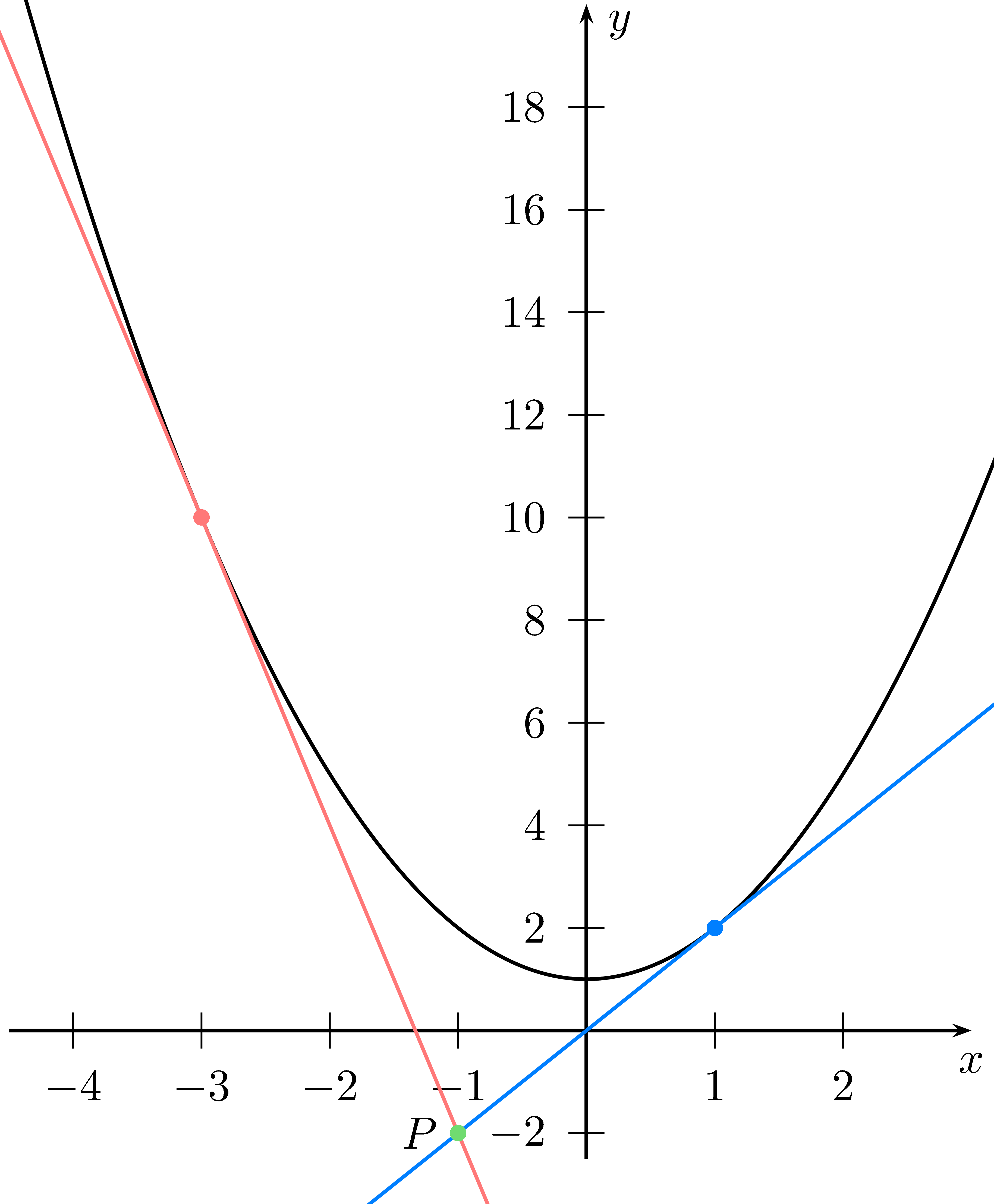 Gesucht sind die Tangenten durch $P$ an den Graph von $f$.