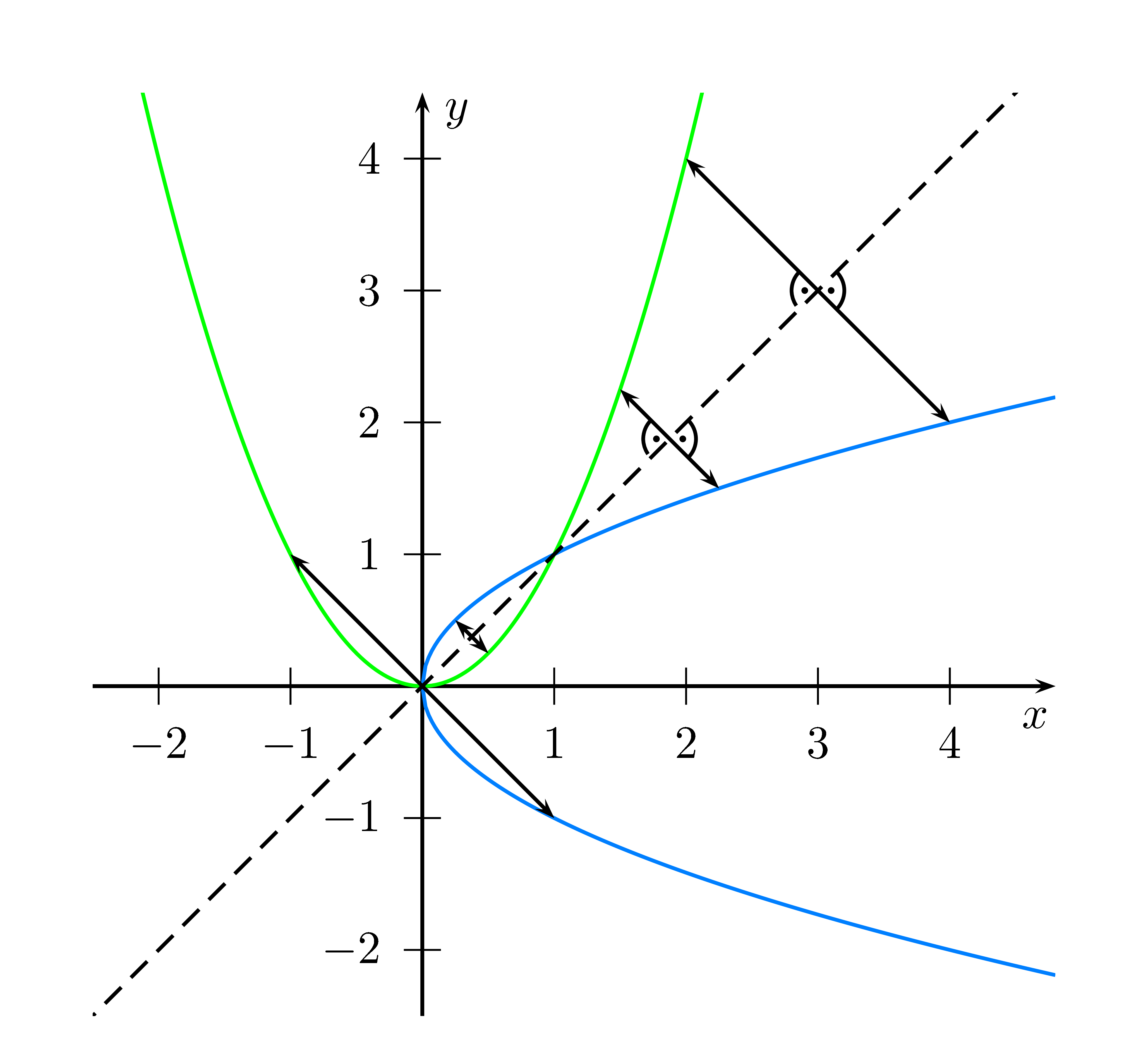 Parabel an $y=x$ gespiegelt für $x\geq 0$