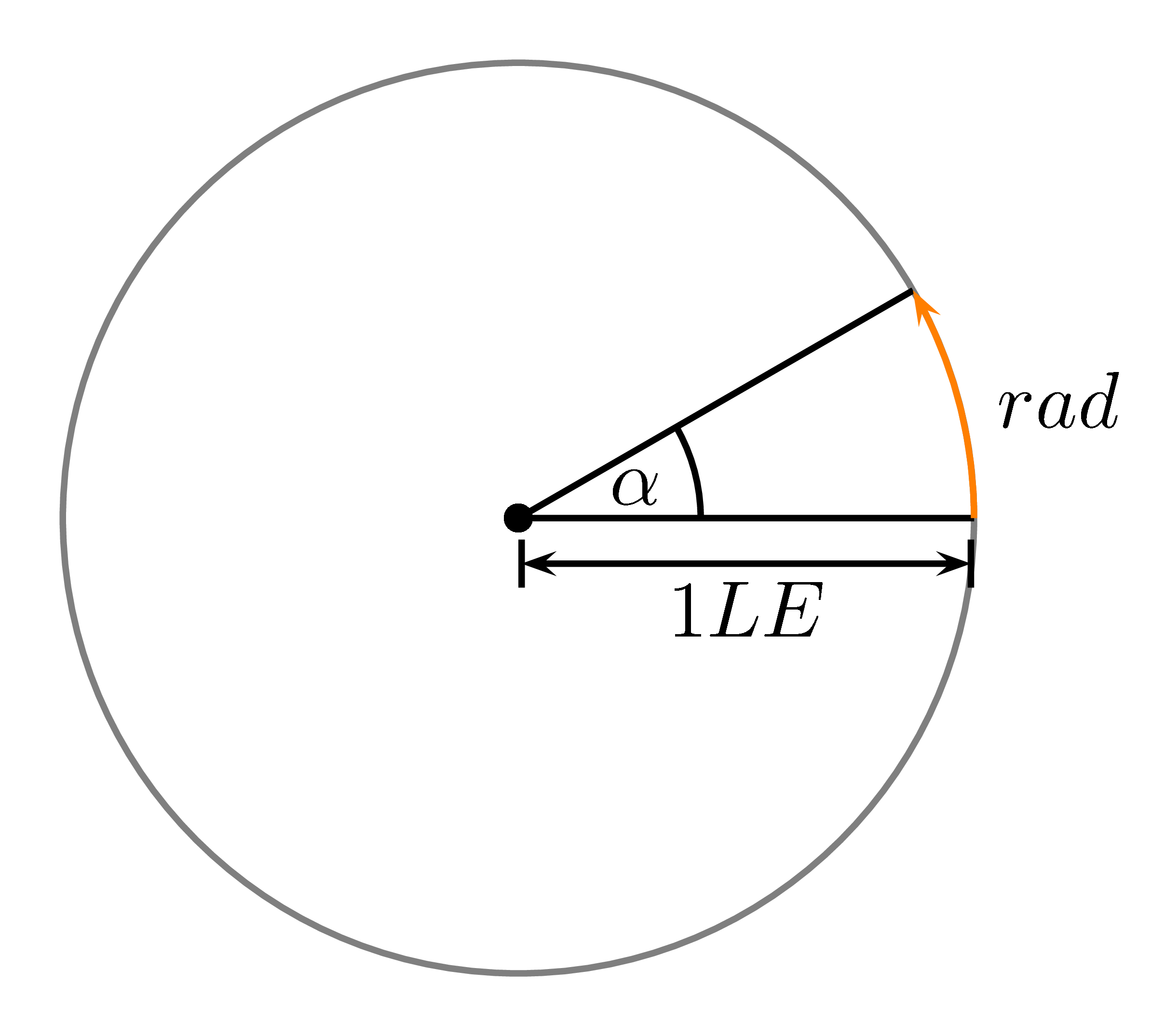 Im Bogenmaß wird der Winkel als Weglänge angegeben, die man auf dem Einheitskreis zurücklegt.